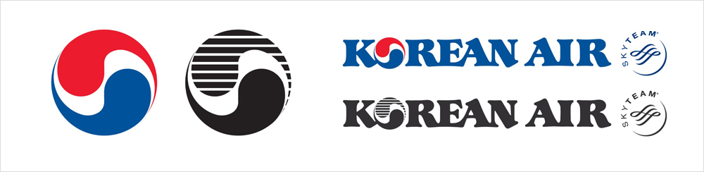 대한항공의 심벌마크는 국적기로서의 이미지를 강렬하게 부각시키기 위해 음양 원리를 바탕으로 하는 태극 문양을 응용하여 적색과 청색을 조화시킴으로써 다이내믹한 힘을 표현하도록 디자인 되었다. 적색과 청색 사이의 흰색은 프로펠러의 회전 이미지를 형상화 한 것으로 엔진의 강력한 추진력과 무한한 창공에 도전하는 대한항공의 의지를 형상화 한 것이므로 원색 로고에 반드시 포함되어야 하며 임의로 다른 색상을 사용해서는 안된다. 단색 심벌마크는 상반부와 하반부에 색조의 차이를 구분하기 위하여 상반부를 여러 개의 수평선으로 표현하도록 되어 있다. 단색 심벌의 경우, 상반부와 하반부를 구분하는 백색 부분이 없고 바탕색에 의해 두 부분이 분리된다.